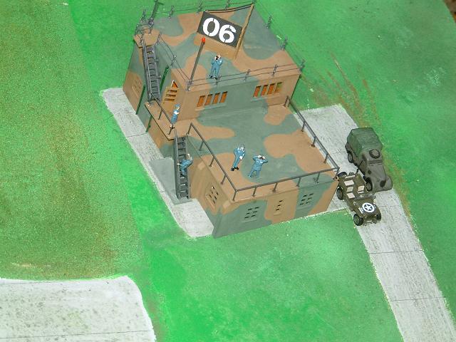 Abel its not my interpretation. We have a camouflage scheme drawing for huts which from memory shows three colours, the darkest of which runs through the windows. If you look at your models the windows show up as black, the idea was to disrupt the window line not enhance it. Though I have to admit in the real world a lot of the time it came down to the skill of painter. We also have quite a few HMSO camouflage paint charts (showing colours) and diagrams for various types of buildings including factories, north light hangars etc, also paint company brochures from the war. We also have a complete set of school class notes from a camouflage school with actual photos showing then and now oblique aerial views of airfields. Finally if you look in my defences book there is a 1941 pic of a camouflaged pillbox, showing the disruptive pattern.