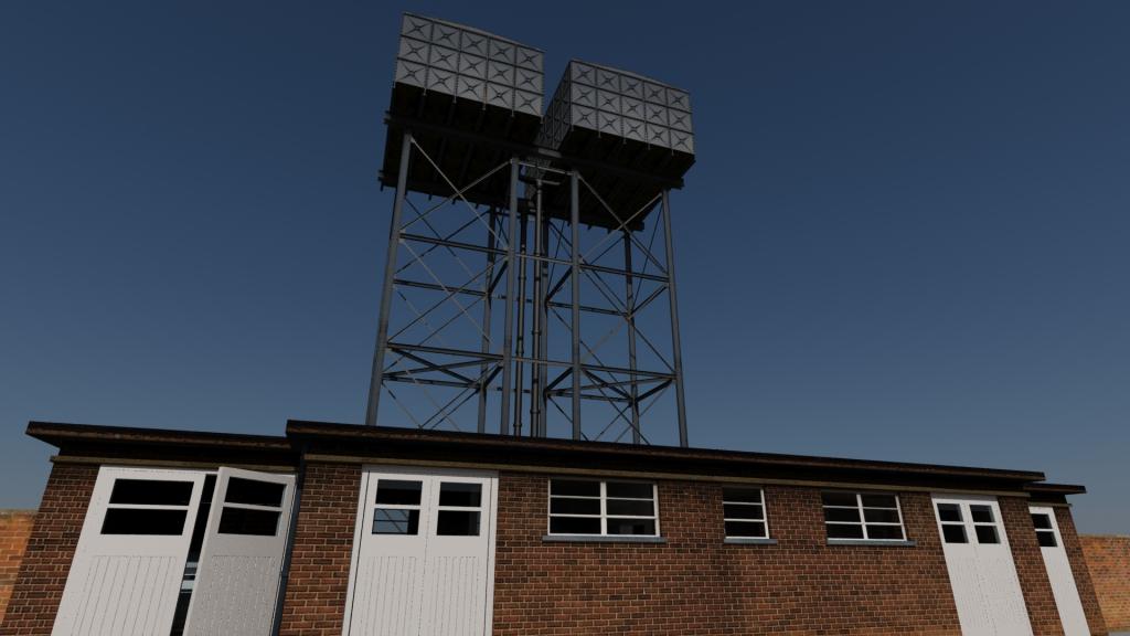 Added in the Water tower, not particularly based on any plan or drawing number, used photos of Middleton St George, Swinderby, Waterbeach and Oakington's water tower to building something that resembles them. Middleton St George and Waterbeach's tower has only 6 legs, Oakington and Swinderby has 8 as in my model.