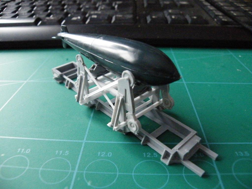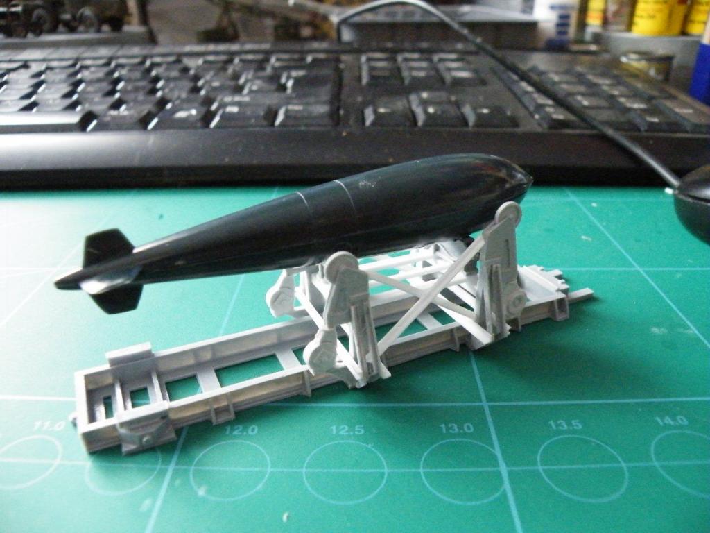 Been getting to grips with the 1/72 Belcher Tallboy/Grandslam trolley; It has been a real battle, the main frame was badly twisted so it spent an afternoon in a bowls of hot water clamped to a steel rule. several different plaastic extrusions are supplied to complete the framework, but of 2 types there isn't enough to complete the frame work, luckily my box of plastic came to the rescue. That said the model is coming on well and I believe is good value . Thanks to Ian ( Able ) I have a Tallboy to show on it. I think i am going to paint the tail natural aluminium various sites give interior grey green, sky, and others natural; I read on a site they were not painted - posted by a former armourer who stated he worked on them ???