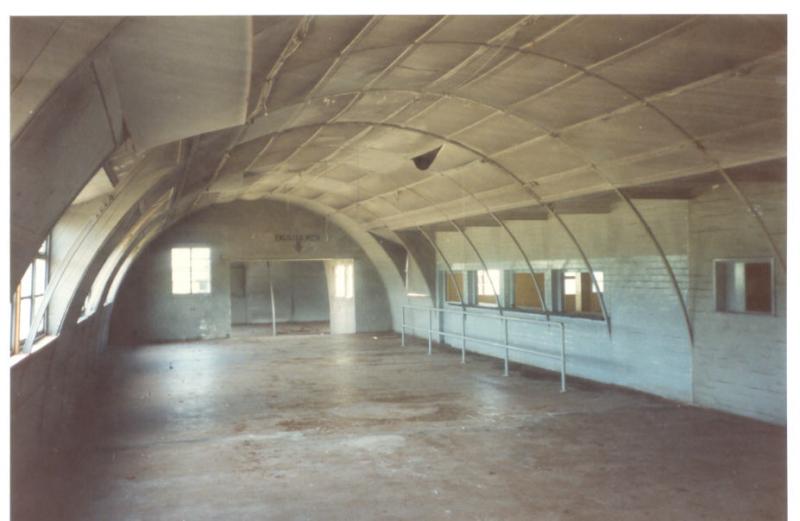 Photo taken inside the Institute after filming the 'Memphis Belle' The serving hatches are clearly seen and at the far end, 'Enlisted men' another Nissen ran 90 degrees to this section of building as seen in the Sim above.